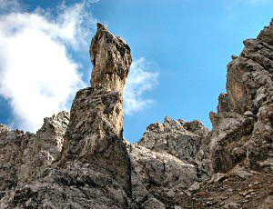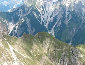 Im Zuge der Alpenbildung wurde das Karwendelgestein nicht nur aufgefaltet, sondern auch nach Norden geschoben. Es ist hier also ein "Zuwanderer" und liegt auf den Gesteinsschichten, welche die Lechtaler Alpen und das Rofan aufbauen. Seine "Verwandten" finden sich südlich des Inntals - jene Kalkgipfel, die im Bereich des Wipptals bis zum Brenner hin immer wieder auf dem Urgestein aufsitzen. Durch den Druck vom Süden sind die Schichten der zweiten und dritten Karwendelkette nach Norden gekippt - die imposanten Felswände befinden sich daher jeweils an den Nordflanken der Berge.