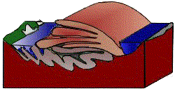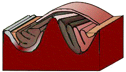 Gesteinspakete ("Decken") aus dem Süden werden weit über jene aus dem Norden geschoben und legen sich als Mantel über fast die ganze Gebirgsbreite.