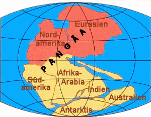 Die Entstehungsgeschichte der Alpen beginnt bereits im Erdaltertum, als Asien, Afrika und Amerika zusammen den Großkontinent "Pangäa" bildeten. Während dessen Entstehung kam es vor 350-280 Millionen Jahren ebenfalls zu einer Gebirgsbildung, bei der Ur-Europa vom Erzgebirge bis zu den Cevennen in Frankreich gehoben wurde. Die Region der späteren Alpen war damals aber nur ein niedriges Hügelland. In der Trias, dem ersten Abschnitt des Erdmittelalters, drifteten die Kontinente wieder auseinander und zwischen Eurasien, Afrika und Nordamerika breitete sich das Tethysmeer aus. In der Trias war unser Alpenraum ein flaches Küstenmeer, in dem reichlich Korallenriffe und kalkabscheidende Algen vorkamen. In der folgenden Jurazeit bildete das Tethysmeer einen tiefen Trog, der zu tief für Riffe und Korallen war. Am Meeresboden sammelten sich nun Muschelschalen und Ammonitengehäuse, aus denen bei der Alpenentstehung Muschel- und Aptychenkalk wurde.