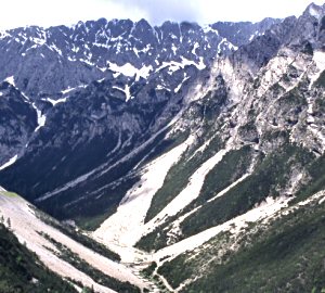 Da die Eiszeitgletscher die Alpentäler U-förmig ausgehobelt haben (Trogtal), finden wir bei uns Kerbtäler an den Mündungen der Seitentäler in die von den Gletschern tiefer ausgeschürften Haupttäler. Nach der Eiszeit haben sich dort die Bachläufe V- bis schluchtförmig eingeschnitten. Deshalb sind viele Alpentäler an ihrer Mündung schmal - oder münden gar mit einer Klamm - und werden erst ein Stück taleinwärts weiter. Gut zu erkennen ist das z.B. beim Paznaun, Kaunertal, Pitztal und Sellraintal, an der Sillschlucht bei Innsbruck oder an der Streimbachmündung ins Lechtal.