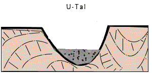 Die Zungen der Eiszeitgletscher hobelten die voreiszeitlichen Kerbtäler der Alpen tief und breit aus. Nach ihrem Rückzug hinterließen sie tiefe Täler mit einem U-förmigen Querschnitt - in hartem Granitgestein mit steilen Flanken (z.B. das Ötztal), in weicherem Gestein mit sanfteren Hängen. Durch das Eintiefen durch den Gletscher enden Trogtäler oft nicht sanft auslaufend, sondern mit einem markanten, steilen Talschluss.