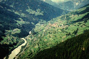 Blick auf die Trockenrasen vor dem Ort Fließ