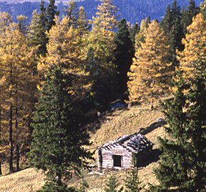 Die meisten unserer Nadelbäume sind immergrün, nur die Lärchen färben sich im Herbst gelb und werfen ihre Nadeln ab.