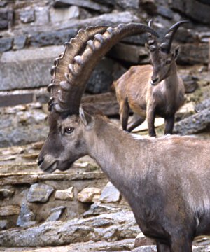 Steinböcke sind akrobatische Kletterer in den Felsen, die "Gummisohle" ihrer Hufe gibt ihnen perfekten Halt. Die Gämsen weiden in Rudeln auf den Grasheiden zwischen den Felsen und kommen im ganzen Alpenraum vor. Der Steinbock war um 1800 beinahe ausgerottet. Er galt in der Volksmedizin als eine Art Universalheilmittel und überlebte nur in den privaten Jagdrevieren von König Viktor Emanuel II. in den Südalpen. Heute sind auch in Tirol wieder viele Gruppen angesiedelt. Den Winter verbringen die Tiere in der Höhe, wo sie unter Felsen Schutz suchen und an windigen und daher schneearmen Hängen Futter finden können.
