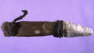 In Holz geschäfteter Feuersteindolch des Mannes im Eis