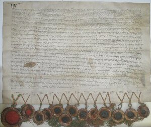 Urkunde zum Anlass der Übergabe Tirols an die Habsburger