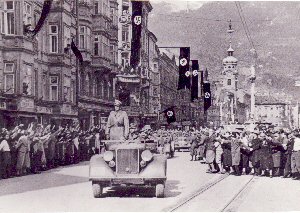 13. März 1938: Panzertruppen der Deutschen Wehrmacht ziehen in Innsbruck ein.