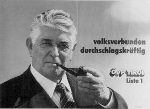 Wahlwerbeplakat der ÖVP mit Spitzenkandidaten und Langzeit-Landeshauptmann (1963-1987) Eduard Wallnöfer