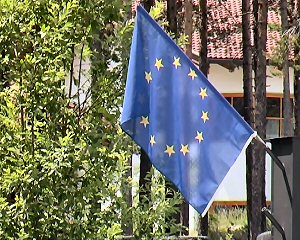 EU-Fahne, aufgenommen im Ötztal