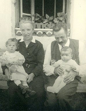 Bauernpaar mit ihren Enkelkindern