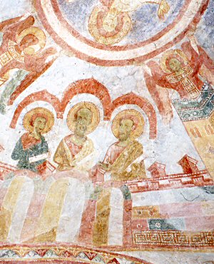 Nikolauskirche bei Matrei i.O., Oberchor: Drei Propheten und das "himmlische Jerusalem", spätromanisch um 1265