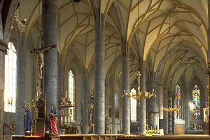 Die Schwazer Liebfrauenkirche (1490-1502) ist die größte Hallenkirche Tirols. Eine ungewöhnliche Doppelrumpfkonstruktion mit zwei Schiffen - links für die Bürger, rechts für die Knappen der Silberbergwerke.