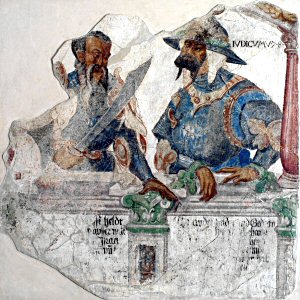 Reste der von Ulrich Funk d.J. 1536 geschaffenen und 1944 zerstörten Gemälde im Meistersingersaal in Schwaz, Rabalderhaus Schwaz