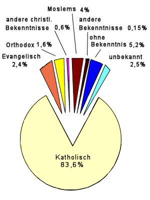 Der Großteil der Tiroler Wohnbevölkerung bekennt sich zu einer Religion. Die Christen sind in Tirol am stärksten vertreten. Nach Daten der Statistik Austria bekannten sich im Jahr 2001 88 Prozent der Tiroler Bevölkerung zum Christentum. Genau gesagt waren 561.680 Personen im Jahr 2001 römisch-katholisch, 16.026 evangelisch, 10.932 christlich-orthodox und 3603 gehörten zu anderen christlichen Gemeinschaften (Altkatholiken, Neuapostolische Kirche). Die Muslimen bilden die zweitgrößte Glaubensgemeinschaft in Tirol. 4 Prozent der Tiroler Bevölkerung (27.117 Personen im Jahr 2001) bekennen sich zum Islam. Drei Viertel der Muslimen sind aus dem Ausland. An die hundert Menschen mit israelitischem Bekenntnis leben in Tirol. Alle anderen nichtchristlichen Religionsgemeinschaften (z.B. die buddhistische) machen 0,1 Prozent der Bevölkerung aus. 5 Prozent (2001) der in Tirol wohnhaften Personen geben an ohne Bekenntnis zu sein.