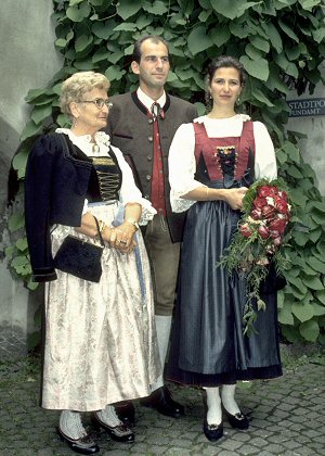Das Paar rechts trägt die Innsbrucker Tracht, die Dame links die Bozner Tracht.