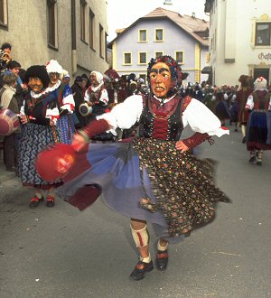 Malerisch sind die gräulichen Masken der in Imst gleich en gros auftretenden Besen schwingenden Hexen, deren Hexenmusik schreckliche Misstöne produziert. Ordnung in das Durcheinander und die Zuschauermengen bringen die Sackner, Spritzer und Majen. Die Sackner bearbeiten das Publikum mit einem weichen, basketballartigen Stoffsack, sie tragen meist die Imster Frauentracht (den Wifling) oder Bauernkleidung des 19. Jahrhunderts. Die Spritzer treten als elegante Mohren, als Engel und als Altfranken in barocker Bürgerkleidung auf. Mit dem kalten Wasserstrahl ihrer langen Metallspritzen, die an den vielen Brunnen Imsts ständig nachgeladen werden, produzieren sie allerdings mehr Durcheinander als sie beseitigen. Das Benetzen der Füße der Zuschauer sollte einst fruchtbarkeitsförderne Wirkung gehabt haben. Hinter dem Umstand, dass die Spritzer heutzutage aber nicht nur das Publikum am Straßenrand einwässern, sondern es sogar schaffen, den Zuschauern in den Häusern eine Ladung zu verpassen, steckt wohl mehr Übermut als die Ausläufer eines alten Gedankenguts. Die Kübelemajen sind nach ihrem Kübelchen, einem mit Puder gefüllten kleinen Eimer, benannt und stauben damit die Gesichter der Zuschauer ein. Besonders gut haftet der Puder nach einem vorherigen Schuss der Spritzer, und das Teamwork der Masken funktioniert natürlich vorzüglich.