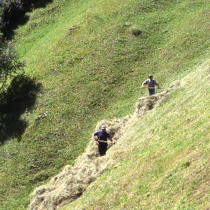 Steile Hänge müssen auch heute noch, wie hier im Ötztal, händisch gemäht werden.